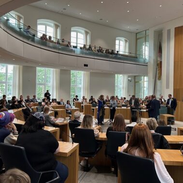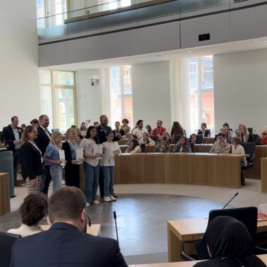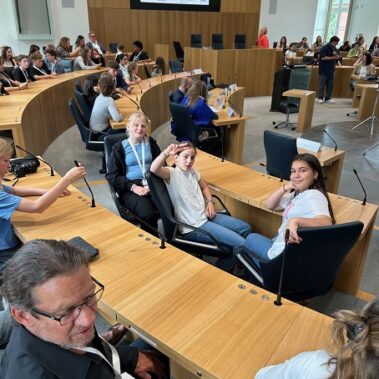 Für die Übergabe des Preises wurde die Gruppe in den Mainzer Landtag eingeladen. Dort durften die Schülerinnen -wie unsere Landespolitiker- an deren Parlamentstischen Platz nehmen und wurden im Beisein der Bildungsministerin Frau Dr. Hubig, des Landtagsvorsitzenden Hering und des Landesvorsitzenden der EuropaUnion Herhammer vom Landesbeauftragten Beygo und dem rheinland-pfälzischen Vertreter der EuropaUnion Reuther geehrt. Sie erhielten Urkunden, Buchgutscheine und einen Geldpreis. Die Veranstaltung wurde mit einer Museumsrallye im Landesmuseum eingeleitet und von einem gemeinsamen Mittagessen aller Preisträger im Mainzer Haus der Jugend begleitet. Nach der Preisverleihung ging es stolz und glücklich mit dem Reisebus zurück nach Neustadt.